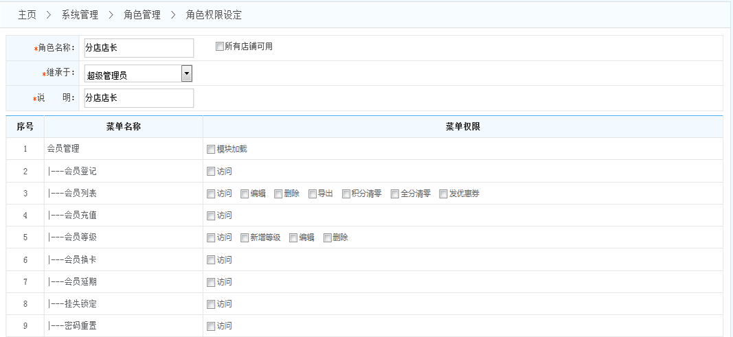 2.本系統(tǒng)的權限是繼承關系 子級的權限最高可以和父級的權限相同