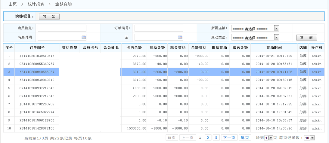 五通一卡通云會員管理系統(tǒng)金額變動統(tǒng)計