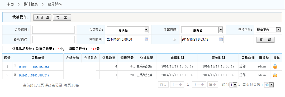 3.兌換禮品統(tǒng)計(jì):將統(tǒng)計(jì)在滿足設(shè)定的條件下的所有兌換禮品的概況