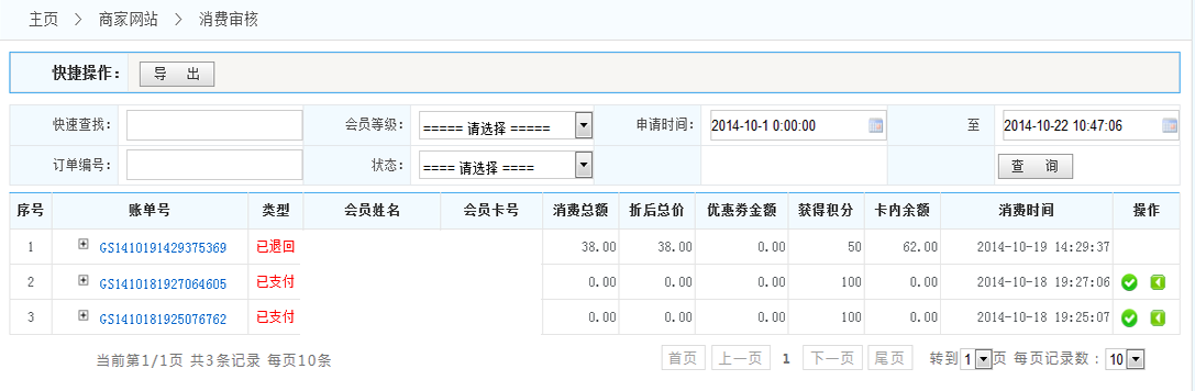通過審核:點擊通過審核,此消費單才可繼續(xù)進(jìn)行