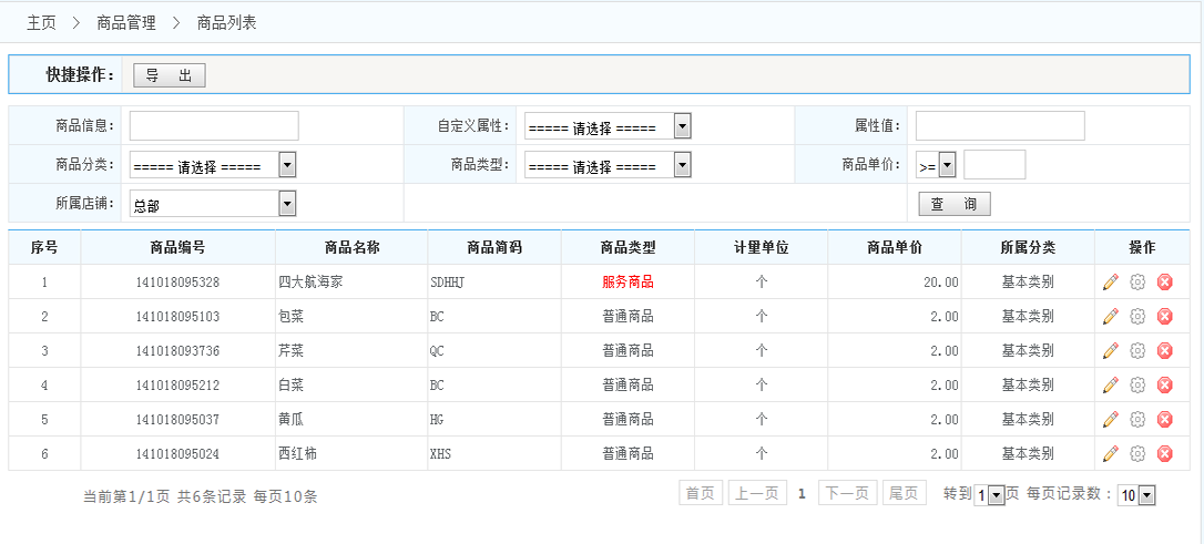 該界面用于查詢(xún)商品信息;